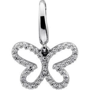 1/5 ct tw Diamond Butterfly Charm. Features triggerless clasp. Matching diamond necklace: 66437. Matching diamond earrings: 67138. Ref. Mtg 84417.