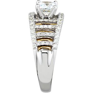 1/2 Carat TW Engagement Ring with Matching Band. 14K Two Tone Gold. Center diamond sold separately. Set with 8ea 0.007 Ct -- 1.15 MM, SI G-I Round Diamond, 10ea 0.009 Ct -- 1.25 MM, SI G-I Round Diamond, 16ea 0.008 Ct -- 1.2 MM, SI G-I Round Diamond, 18ea 0.005 Ct -- 1 MM, SI G-I Round Diamond & 22ea 0.006 Ct -- 1.1 MM, SI G-I Round Diamond.