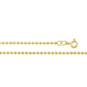 1.75 mm Solid Bead Chain with Spring Ring Clasp. 14K Yellow Gold.