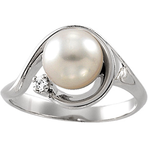 14KW Akoya Cultured Pearl 8 mm & Diamond Ring | .03 Carat TW.