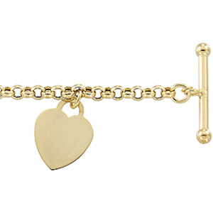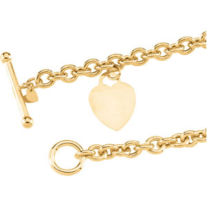 4 mm Rolo Bracelet | 15.75 x 20.5 mm Heart | 7 inch. Toggle clasp.