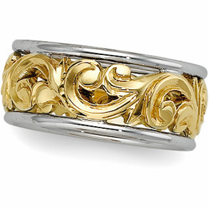 8.5mm Two Tone Openwork Hand Engraved Band Ref 159342