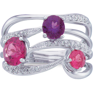 Amethyst, Rhodolite Garnet, Pink Tourmaline and Diamond Ring Ref 272703