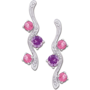 Genuine Amethyst, Rhodolite Garnet, Pink Tourmaline and Diamond Earrings | 1/10 Carat TW