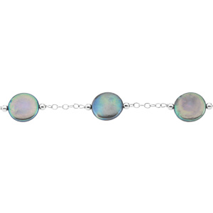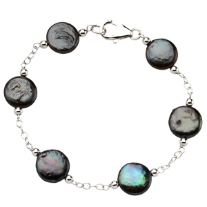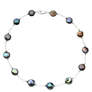 Freshwater Cultured Black Coin Pearl Station Necklace or Bracelet | 12 to 13 mm. Sterling Silver. Matching Earrings: 66362.