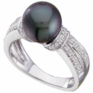 Black Freshwater Cultured Pearl and Diamond Ring 9mm Ref 429596