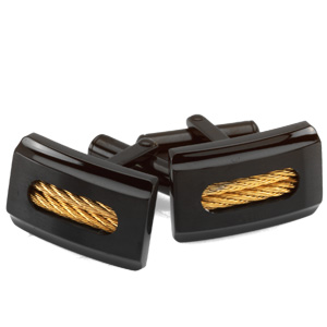 Black Ion Plated Stainless Cufflinks with Yellow Ion Plated Cable Ref 188036