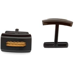 Black Ion Plated Stainless Steel Cufflinks with Yellow Ion Plated Cable. Matching Bracelet: BRC398. Matching Cross Pendant: R42166.