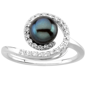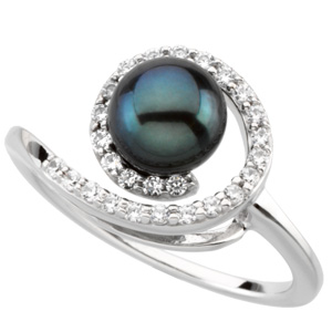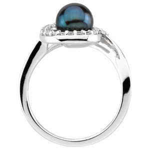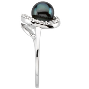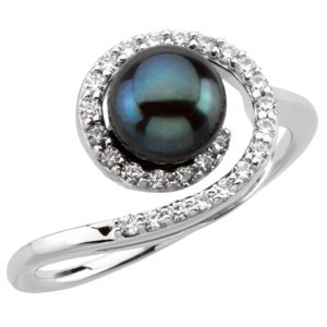 Set with:1ea Cultured Pearl - Round Akoya; Black 07.00 MM AA Half Drilled26ea Genuine Diamond G-H Round SI1 01.30 MM (01.24 - 01.40) Full Cut