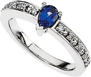 Set with:1ea Chatham® Lab Created Blue Sapphire - Pear Shape 06.00x04.00 MM Gem Faceted 10ea Genuine Diamond G-H Round SI1 01.30 MM (01.24 - 01.40) Full Cut