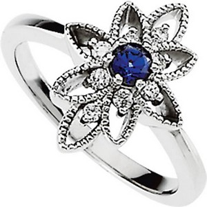 Chatham Created Blue Sapphire & Diamond Ring | 3.5 mm | 1/6 Carat TW. Ref 120992.