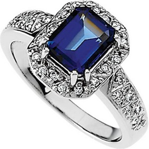 Set with:1ea Chatham® Lab Created Blue Sapphire - Emerald/Octagon 08.00x06.00 MM Gem Faceted 26ea Genuine Diamond G-H Round SI1 01.00 MM (01.00 - 01.15) Full Cut 4ea Genuine Diamond G-H Round SI1 01.20 MM (01.16 - 01.23) Full Cut