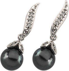 Cultured Black Pearl and Diamond Earrings 7mm .1 CTW Ref 244925