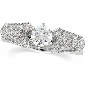 Diamond Bridal Enhancer | 1/5 Carat TW Side Diamonds. 14K White Gold. Shown with 6-Prong Round Heavy Shank Solitaire SKU 140309H, which is sold separately.
