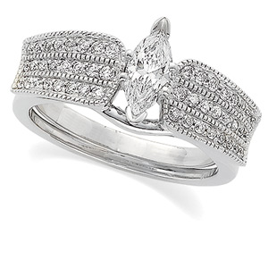 Diamond Bridal Enhancer | 1/3 Carat TW Side Diamonds. 14K White Gold. Shown with 6-Prong V-End Marquise Solitaire SKU 140145L, which is sold separately.