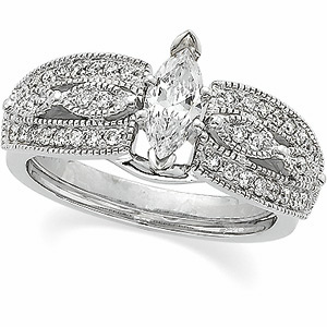 Diamond Bridal Enhancer | 1/3 Carat TW Side Diamonds. 14K White Gold. Shown with 6-Prong V-End Marquise Solitaire SKU 140145L, which is sold separately.