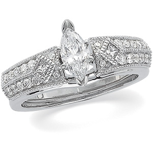 Diamond Bridal Enhancer | 1/3 Carat TW Side Diamonds. 14K White Gold. Shown with 6-Prong V-End Marquise Solitaire SKU 140145L, which is sold separately.