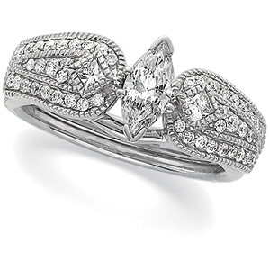 Diamond Bridal Enhancer | 1/2 Carat TW Side Diamonds. 14K White Gold. Shown with 6-Prong V-End Marquise Heavy Shank Solitaire SKU 140145H, which is sold separately. Solitaire and center stone sold separately.