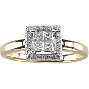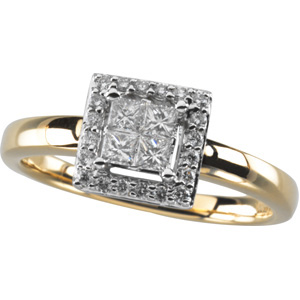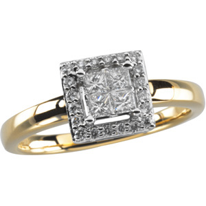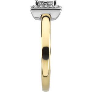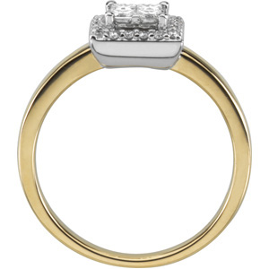 Diamond Engagement Ring | 1/3 Carat TW. 14K Two Tone Gold. Set with 4ea 0.060 Ct -- 2.00 MM, SI G-I Princess Diamond & 20ea 0.006 Ct -- 1.1 MM, SI G-I Round Diamond.