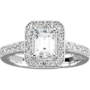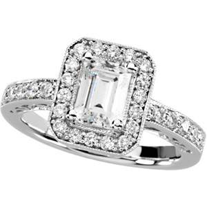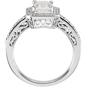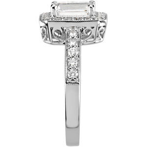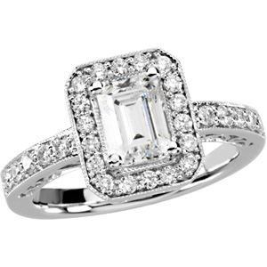 Diamond Engagement Ring | 3/8 Carat TW. Shown with 7x5mm Emerald center diamond sold separately. 14K White Gold. Set with 10ea 0.019 Ct -- 1.6 MM, SI G-I Round Diamond & 18ea 0.014 Ct -- 1.45 MM, SI G-I Round Diamond.