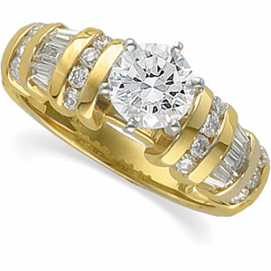 Diamond Semi Set Engagement Ring | 3/4 Carat TW Round & Baguette Side Diamonds. Center stone sold separately.