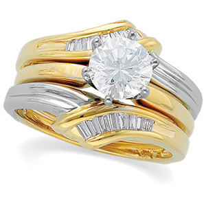 Diamond Ring Guard | 1/5 Carat TW Side Diamonds. 14K Two Tone Gold. Shown with Round Six-Prong Solitaire SKU 150309, which is sold separately. Solitaire and center stone sold separately.