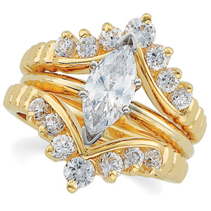 Diamond Ring Guard | 1/2 Carat TW Side Diamonds. Shown with 6-Prong V-End Marquise Solitaire SKU 140145L, which is sold separately. Ref. Mtg. 11564.
