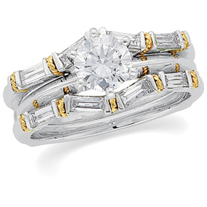 Diamond Ring Guard | 1/2 Carat TW Side Diamonds. Shown with 6-Prong Round Solitaire SKU 140309L, which is sold separately. 14K Two-Tone Gold.