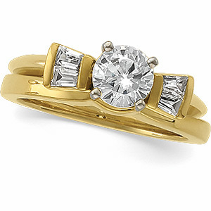Diamond Ring Wrap | .08 Carat TW. Set with 4ea 2.75 x 1.25 x 1 mm Step SI2/I1 TAPERED BAGUETTE STEP GHI GENUINE DIAMOND. Shown with 4-Prong Round Solitaire SKU