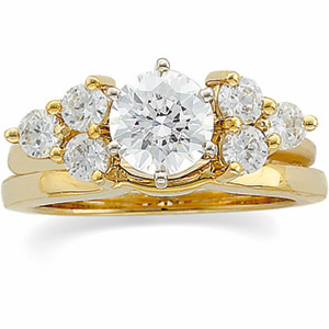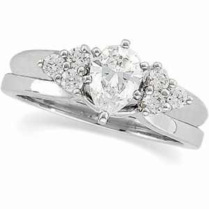 Diamond Ring Wrap | 1/4 Carat TW | 6ea 2.2 mm Side Diamonds. Shown with 1 Carat Round Six-Prong Solitaire SKU 150309 & 6-Prong Pear Shape Solitaire SKU 140408L, which are sold separately. Solitaire and center stone sold separately. Ref. Mtg. 11572.