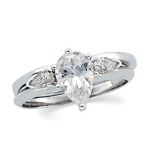 Diamond Solitaire Enhancer | 1/4 Carat TW | 4 x 2.5 mm Diamonds. Set with 2ea 4 x 2.5 mm Faceted SI PEAR SHAPE FACETED GHI GENUINE DIAMOND. Shown with 6-Prong Pear Shape Solitaire SKU 140408L, which is sold separately. Solitaire and center stone sold separately. Ref. Mtg. 10850.