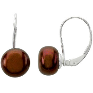 Freshwater Chocolate Pearl Earrings. Set with 2ea 09.00-09.50 MM Standard Half Drilled, Cultured Pearl - Button Half Drilled Pair Fg Freshwater; Chocolate.