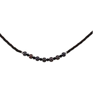 Freshwater Cultured Black Pearl, Onyx and Leather Necklace Ref 225070