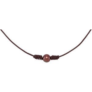 Freshwater Cultured Chocolate Pearl and Leather 18 inch Necklace Ref 463810