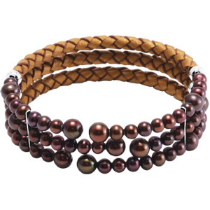 Freshwater Cultured Copper Color Pearl and Leather Cuff Bracelet Ref 548373