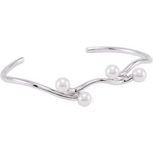 Freshwater Cultured Pearl Cuff Bracelet. Sterling Silver. Ref. BRC709. Set with 4ea 6-6.5 MM, Round Gemstone Fresh Water Pearl.