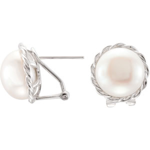 Freshwater Cultured Pearl Earrings. Sterling Silver. Set with 2ea 11.5 MM, Gemstone Fresh Water Pearl Button.