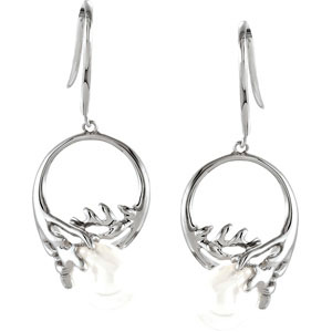 Freshwater Cultured Pearl Earrings. Sterling Silver. Matching ring: 67975. Matching pendant: 67976. Set with 2ea 7.5-8 MM, FRESHWATER Round Pearl.