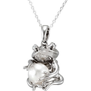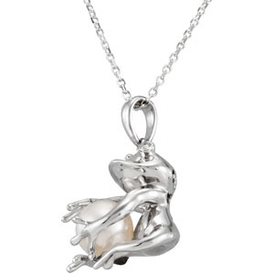 Freshwater Cultured Pearl Frog Pendant. Sterling Silver. Chain sold separately.