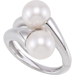 Freshwater Cultured Pearl Hinged Two Finger Ring. Sterling Silver. Set with 2ea 8.5-9 MM, Round Gemstone Fresh Water Pearl.