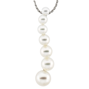 Freshwater Cultured Pearl Necklace. 18-inch sparkle singapore chain CH617 included. Available in 14K Yellow Gold or 14K White Gold. Set with 1ea 0.110 Ct -- 4.00 MM, Round Gemstone PEARL, 1ea 0.150 Ct -- 4.50 MM, Round Gemstone PEARL, 1ea 0.190 Ct -- 5.00 MM, Round Gemstone PEARL, 1ea 0.280 Ct -- 5.50 MM, Round Gemstone PEARL, 1ea 0.440 Ct -- 6.50 MM, Round Gemstone PEARL & 2ea 0.070 Ct -- 3.50 MM, Round Gemstone PEARL.