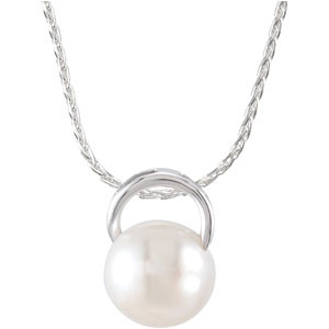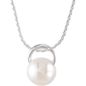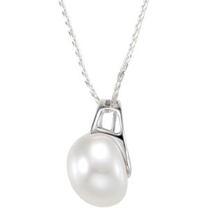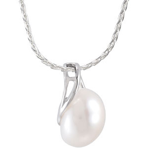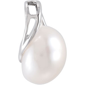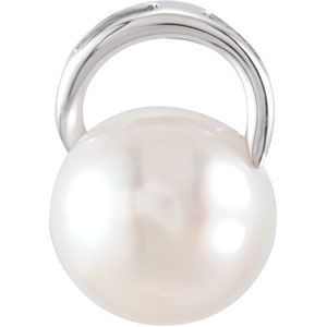Freshwater Cultured Pearl Pendant. Sterling Silver. Chain sold separately. Set with 1ea 12-13 MM, C1 Round Gemstone Fresh Water Pearl.