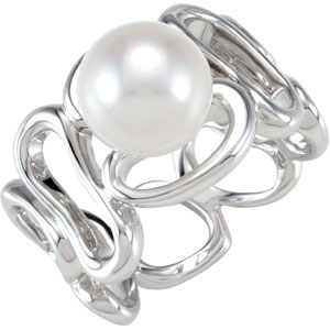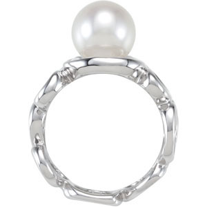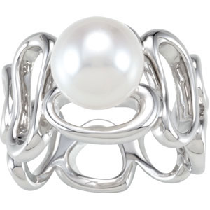 Freshwater Cultured Pearl Ring. Sterling Silver. Ref. 6437. Set with 1ea 9.5-10 MM, B2 Round Gemstone Fresh Water Pearl.