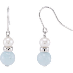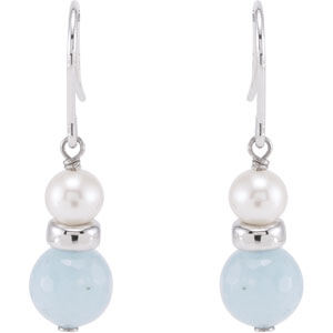 Freshwater Cultured Pearl & Genuine Aqua Earrings. Sterling Silver.