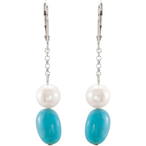 Set with:2ea 1.040 Ct -- 12x9 MM, Gemstone Stab. Turquoise2ea 7.5-8 MM, Potato Gemstone Fresh Water Pearl