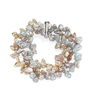 Freshwater Keshi Multi-Color Cultured Pearl Strand | 8 - 9 mm. Sterling Silver.