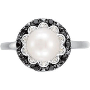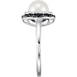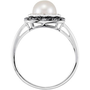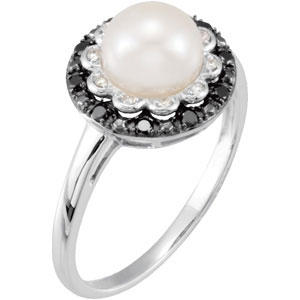 Freshwater Pearl & Black/White Diamond Ring. Matching Pendant: 68086. 14K White Gold. 7.00-07.50 MM Pearl. 1/6 Carat TW.