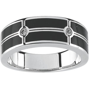 Gents Onyx & Diamond Band | 1/10 Carat TW. Band width tapers 8mm to 5.45mm.