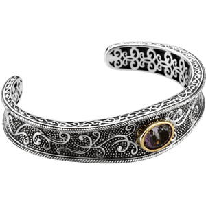 Genuine Amethyst Bracelet | 11 x 9 mm. Sterling Silver & 14K Yellow Gold. Matching Earrings: 66442, Ring: 66444 & Necklace: 66602. Set with: 1ea 2.880 Ct -- 11x9 MM, AA Oval Gemstone Amethyst