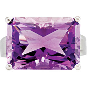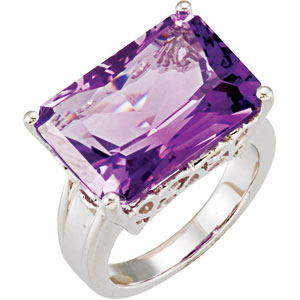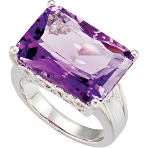Genuine Amethyst Ring. Sterling Silver. Set with 1ea 14.200 Ct -- 18x13 MM, Gemstone RADIANT OCTAGON AMETHYST.